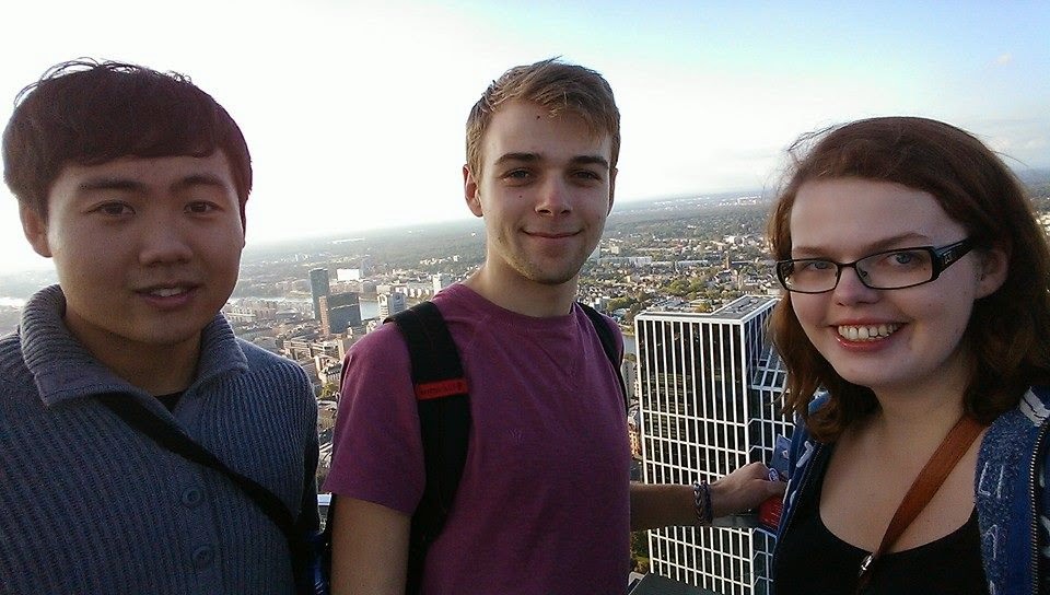I was up bright and early (actually not so bright, it was still dark at 6am) on Saturday morning to visit my fourth German city: Frankfurt. After the customary high stress levels of waking up 10 minutes before my tram left (!) I managed to get to the main station in time to catch our coach. For anyone who doesn’t know, meinfernbus.de is much cheaper than catching the train and it goes to most cities in Germany. The journey wasn’t too bad; it only took 3 1/2 hours with a short stop off at Heidelberg (didn’t get to see the castle though!). When we arrived in Frankfurt we had a Bratwurst as a late breakfast and then headed to the Altstadt town centre. This is a really nice square where the Christmas market takes place. Frankfurt is a cool place because it has a mixture of quaint old buildings and modern skyscrapers. We went to the top of one of the highest buildings in the city which has amazing views.